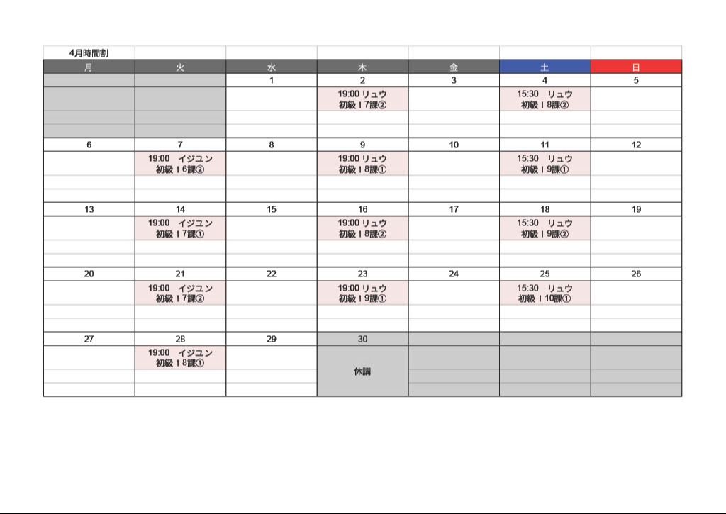 4月 中目黒校スケジュール