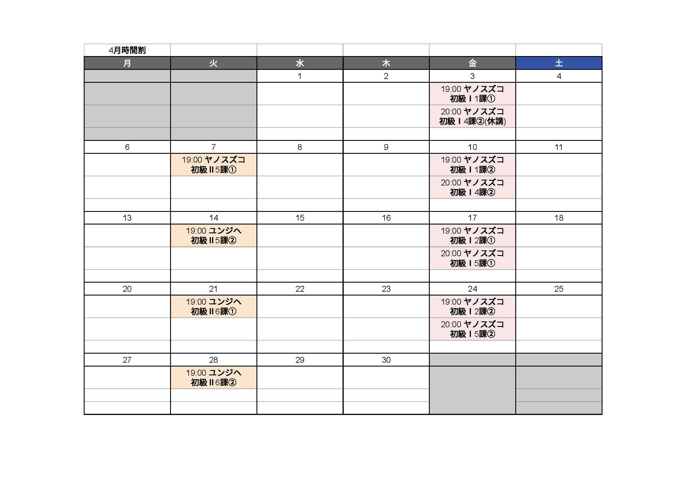 振替をご希望の際は、クラスごとの進度をご確認の上、お手続きをお願いいたします。